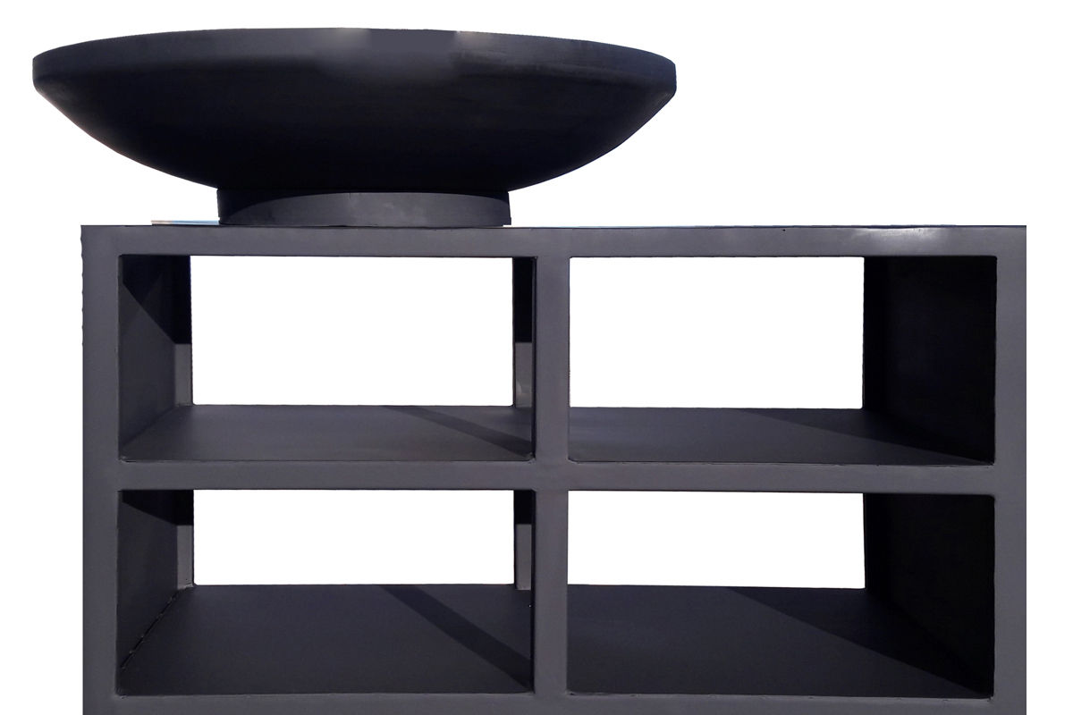 Металева тумба, на якій стоїть мангал, створює затишний простір для відпочинку, робить приготування страв зручним, слугує столом та дровником.
