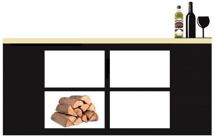 Полиці, облаштовані в столі, слугують для розміщення тари, кухонного приладдя або для впорядкування зберігання дров в зоні барбекю.